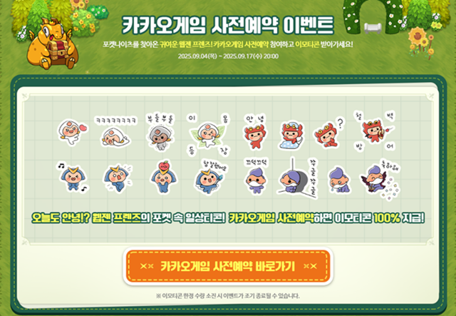 아예 웹젠 프렌즈 이모티콘을 줍니다
