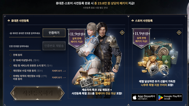 사전등록 받는 중이긴 한데 보상으로 실제 판매하는 23만 8천원치 패키지를 준다고 합니다