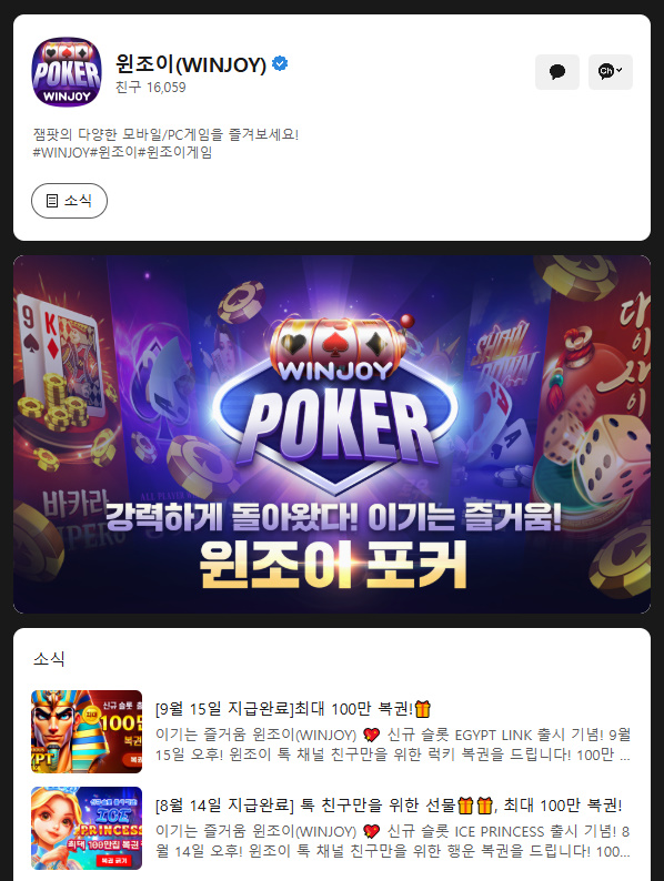 윈조이포커 카카오톡 채널도 있는 거 아시나요