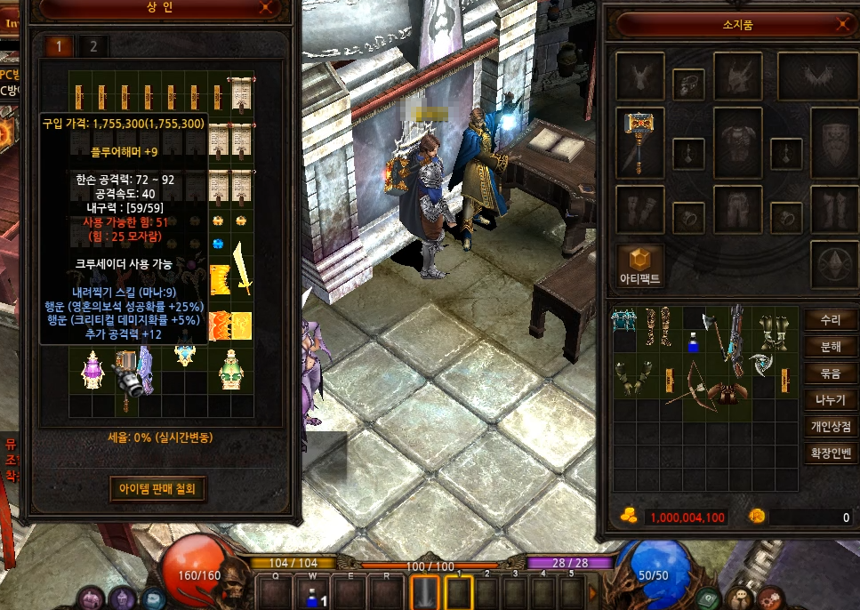 바로 무기, 방어구 구매해서 사냥하다가 바로 조건되면