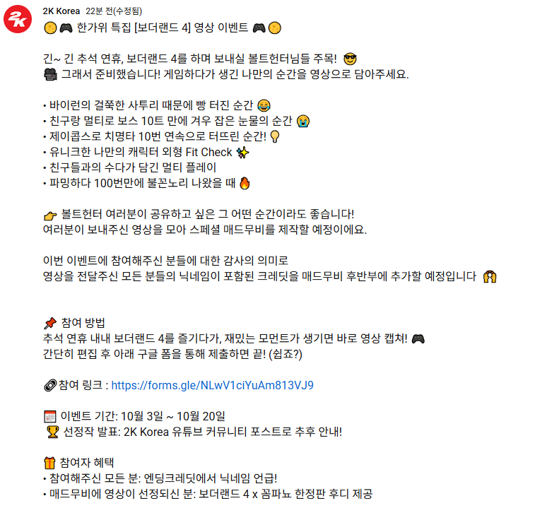 한가위 특집으로 영상 이벤트를 진행한다고 해요