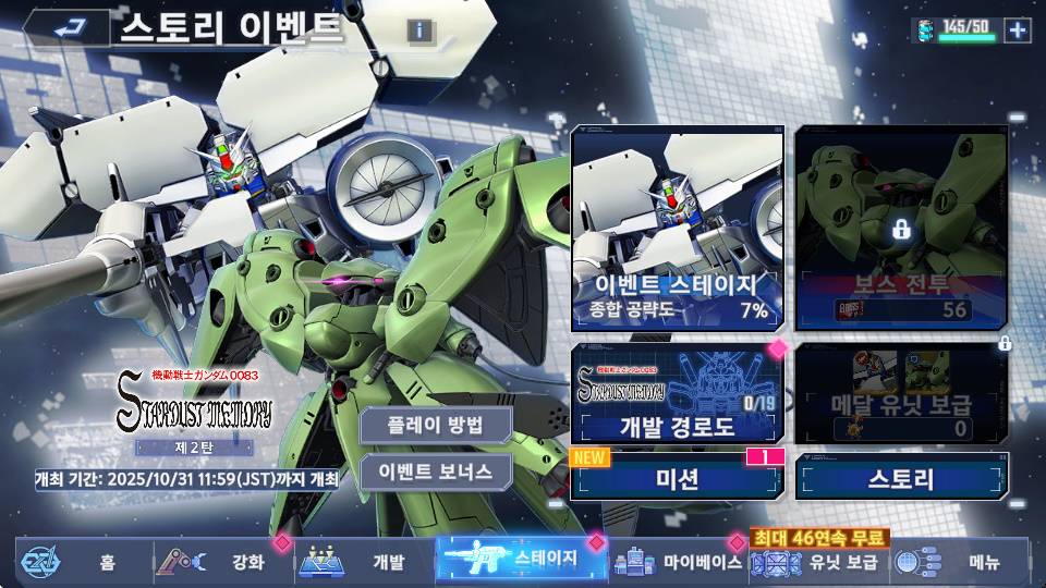이번 스토리 이벤트로 0083 스타더스트 메모리 나왔거든요