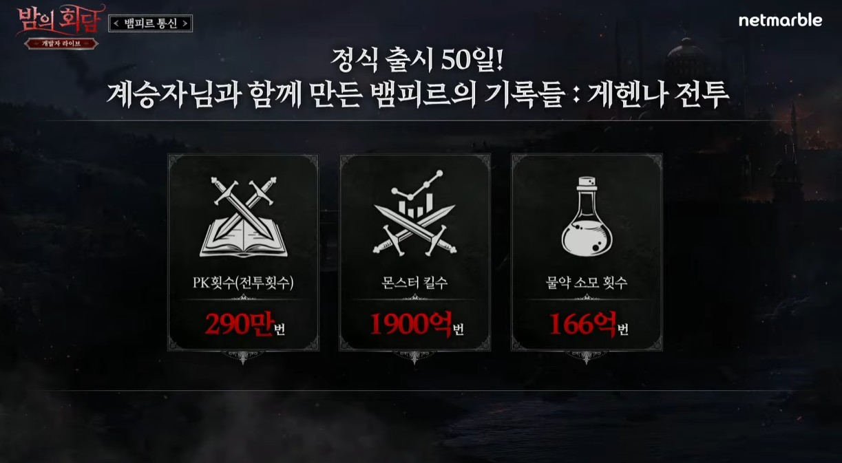 뱀피르 출시 50일을 기념해서 라이브 방송 진행했었는데