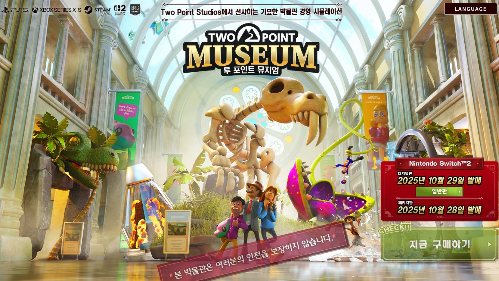 투 포인트 뮤지엄이 드디어 닌텐도 스위치2 버전으로 정식 발매되었습니다. 투 포인트 시리즈의 경우 병원과 대학에 이어 기묘한 박물관 경영 시뮬레이션인 뮤지엄 역시 지난 3월 스팀, PS5, XBOX 등으로 먼저 출시되어서 꽤 많은 인기를 얻기도 했는데요. 10월 29일부터 드디어 닌텐도 스위치2를 통해서도 즐길 수 있게 되었네요.