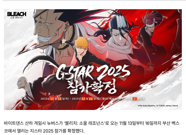 지스타 2025 참가 확정 + 사신대행 컨셉 전시 + 시연 버전 체험