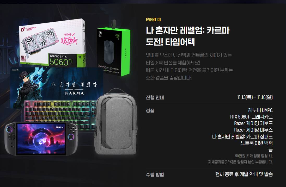 보니까 지스타에 나혼렙 카르마 참가하는 것 같더라고요