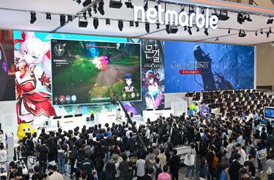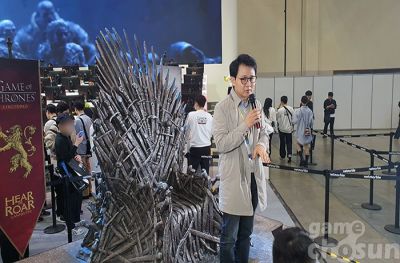 ... 왕좌의 게임 IP를 대표하는 캐릭터 ‘백귀’를 코스프레한 코스어가 상징적인 소품 ‘철왕좌’와 함께 ‘왕좌의 게임: 킹스로드’ 부스에 등장한 것. 이후 ‘백귀’ 코스어가 넷마블관 중앙 무대로 이